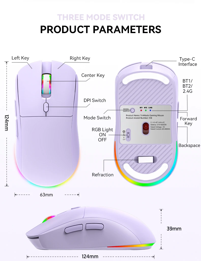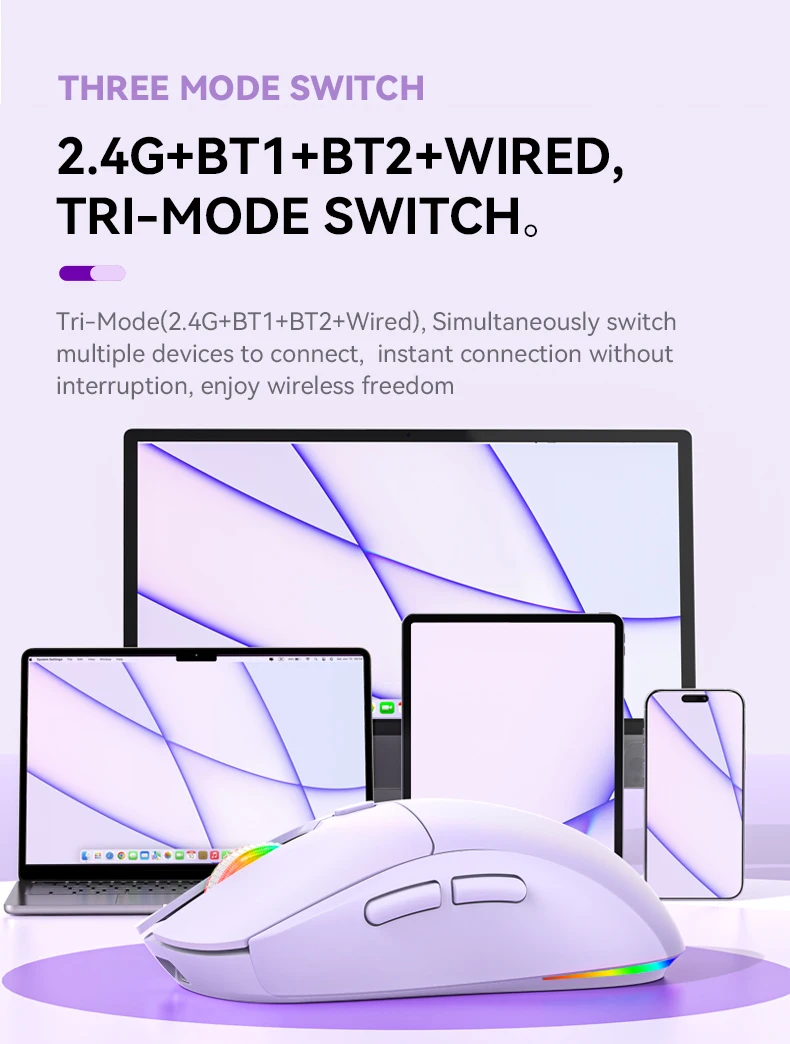 feature 4: Bluetooth/2.4G/wired Tri-Mode Mouse